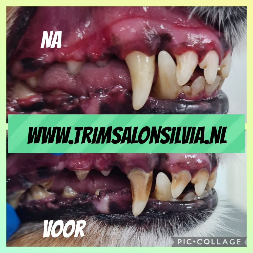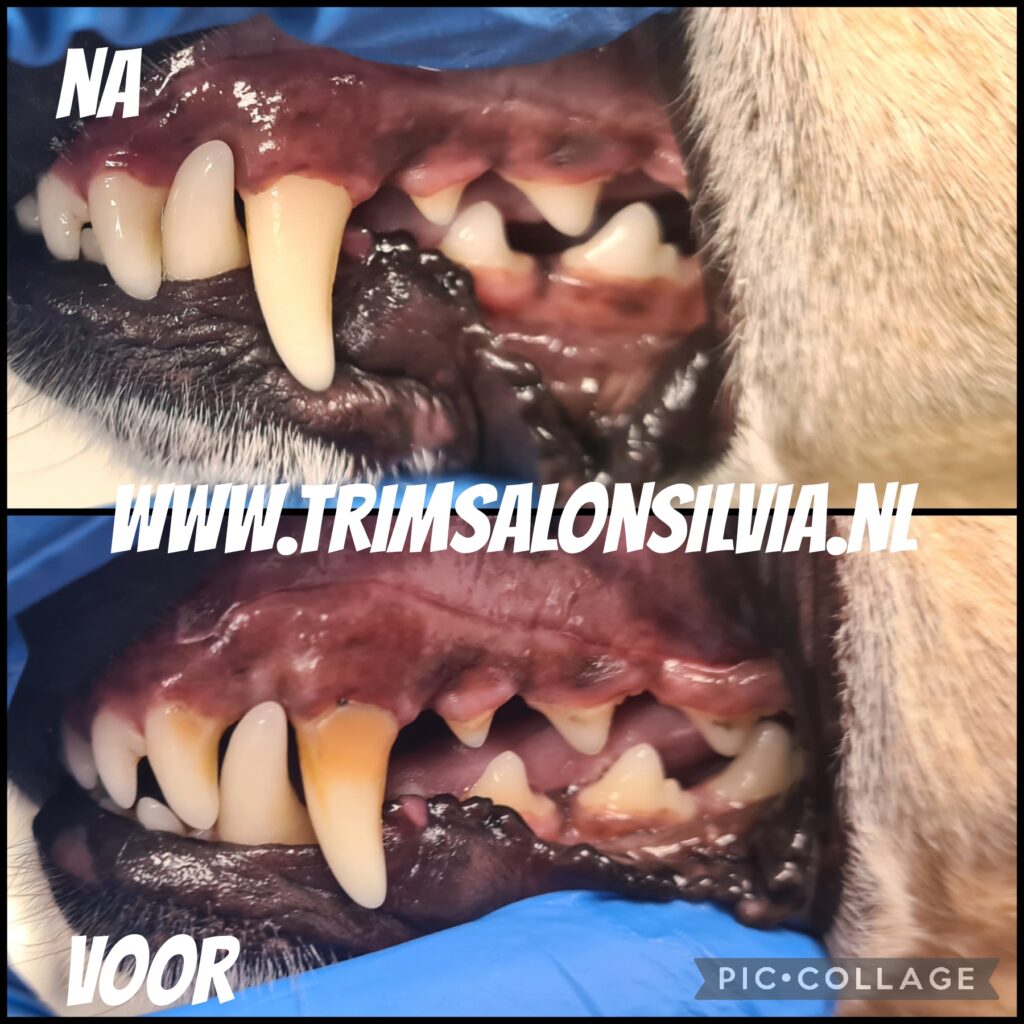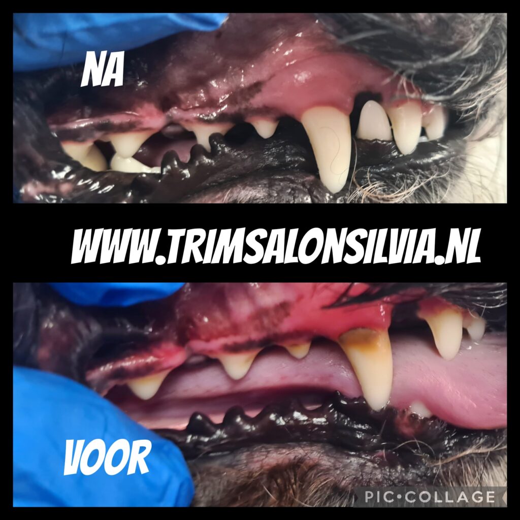 Naast het verzorgen van de vacht is het onderhoud van het gebit van uw hond net zo belangrijk. Heeft uw hond last van tandplak of tandsteen en stinkt uw hond daardoor uit zijn of haar mond? Dan is een gebitsreiniging noodzakelijk. Lukt het u niet om de tanden te poetsen of te reinigen? Wilt u voorkomen dat uw hond bij de dierenarts onder narcose moet, omdat hij of zij teveel stress ervaart of door oudere leeftijd of medische mankementen de narcose te risicovol wordt? Trimsalon Silvia heeft voor uw hond een passende oplossing.