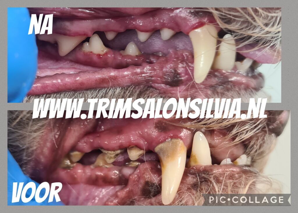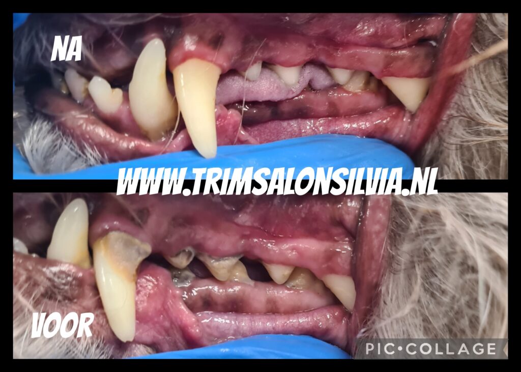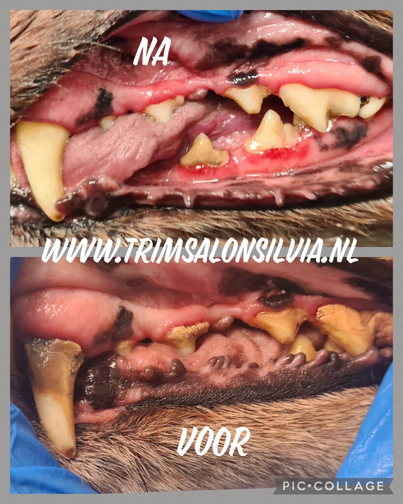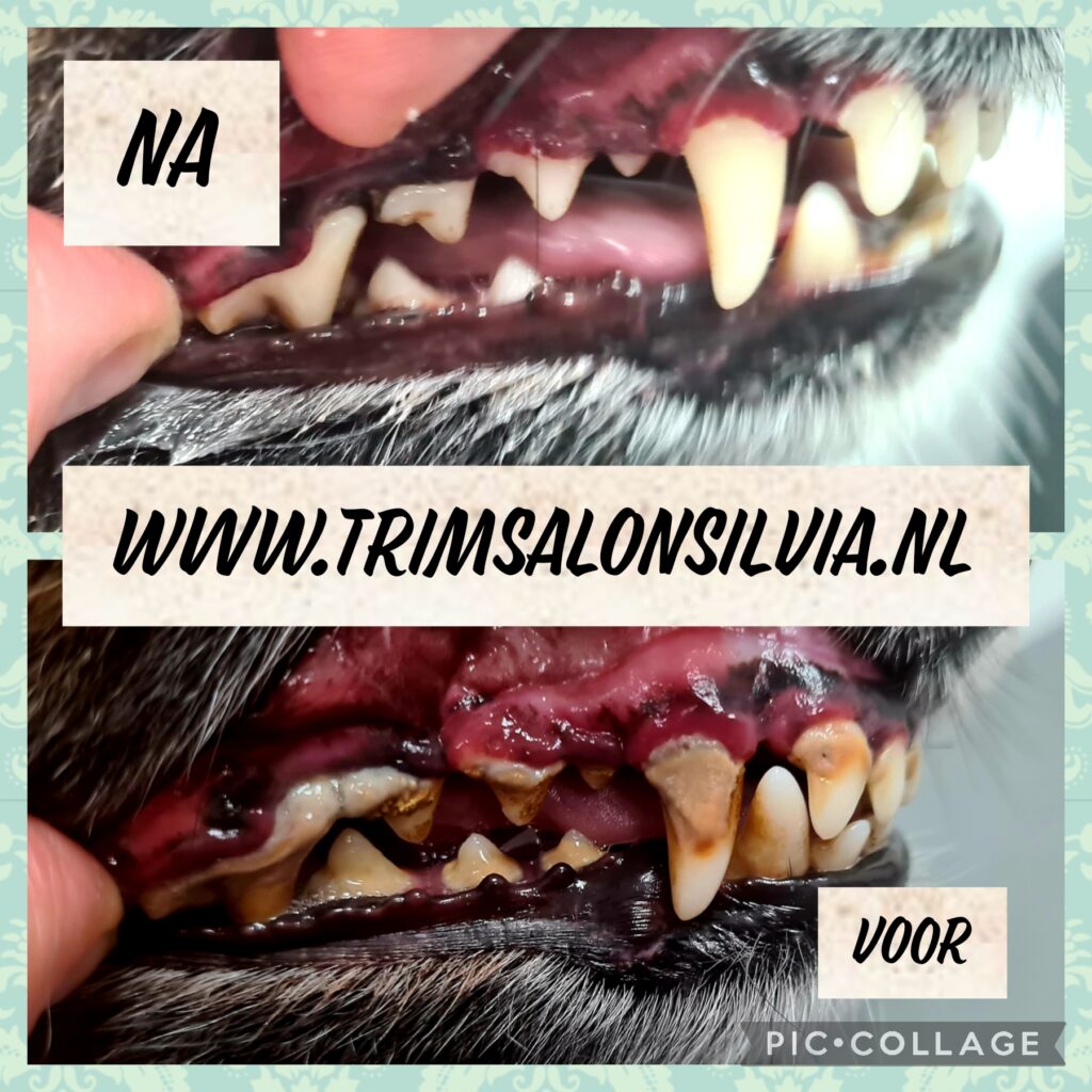 Naast het verzorgen van de vacht is het onderhoud van het gebit van uw hond net zo belangrijk. Heeft uw hond last van tandplak of tandsteen en stinkt uw hond daardoor uit zijn of haar mond? Dan is een gebitsreiniging noodzakelijk. Lukt het u niet om de tanden te poetsen of te reinigen? Wilt u voorkomen dat uw hond bij de dierenarts onder narcose moet, omdat hij of zij teveel stress ervaart of door oudere leeftijd of medische mankementen de narcose te risicovol wordt? Trimsalon Silvia heeft voor uw hond een passende oplossing.