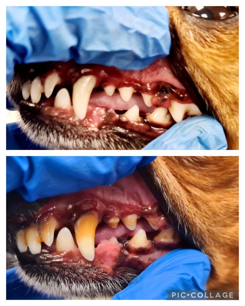 - In een enkel geval kan ik de hond niet behandelen. Als de hond het niet toestaat dat er in de bek gekeken of gevoeld mag worden. Alles gaat en staat bij acceptatie om in de bek te mogen zitten. Wees daar ook eerlijk in. Een hond die het niet accepteert om in de mond te mogen ziten en gaat bijten is niet te behandelen. Wanneer de staat van het gebit ernstig is aangetast omdat er losse tanden of kiezen in zitten die getrokken moeten worden of ernstige ontstekingen in de bek heeft, dan kan de behandeling niet uitgevoerd worden. Dan is het noodzakelijk dat uw hond moet worden behandeld door een dierenarts. Ik zal ten alle tijde zelf beoordelen of het gebit kan worden behandeld met de EmmiPet en indien dit niet mogelijk is met u bespreken wat de vervolgstappen zijn.
